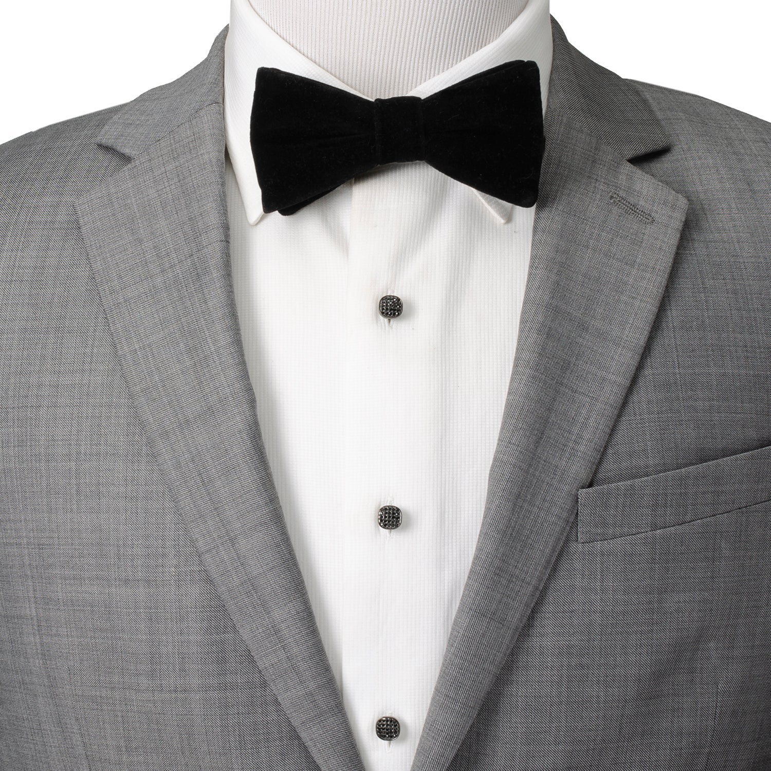 Made of black plated stainless steel with black preciosa crystals in a pave setting, these tuxedo studs are a modern and masculine take on the basic black. Pair with the Stainless Steel Black Pave Crystal Cufflinks for a complete look at your next black tie event.