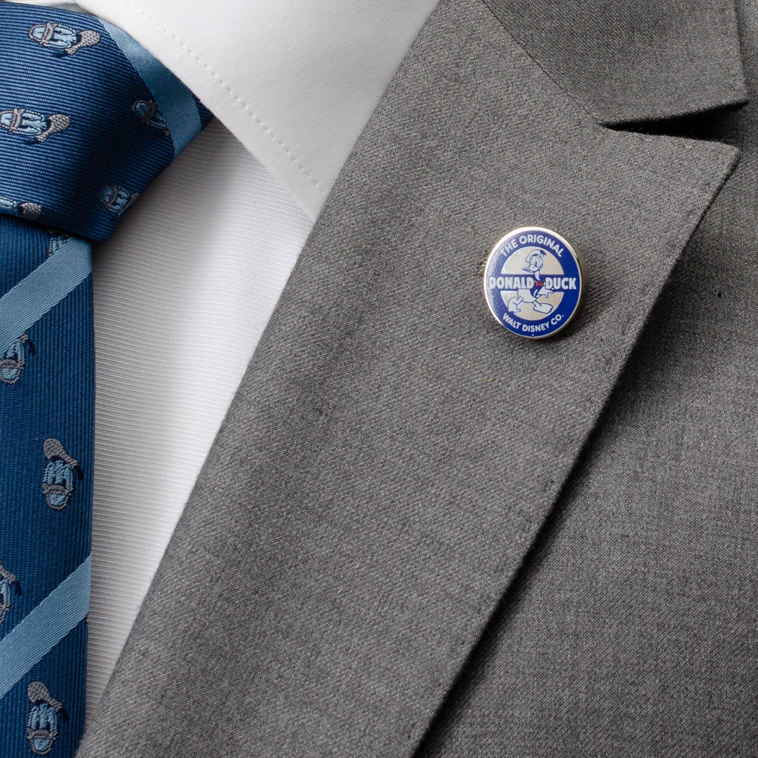 The Original. The Best. The one and only Donald Duck. Celebrate the legacy of Walt Disney with our Original Donald Duck Lapel Pin. Designed with a beveled edge and features original blue and white artwork and a deluxe clutch backing, our lapel pin holds a century of magic. Experience enchantment with our expertly crafted base metal lapel pin. It's built to last, infused with Disney magic, and ready to accompany you on whimsical adventures. Add a touch of whimsy to your journey with this durable and intricately detailed pin. Pair with any of our Donald Duck Cufflinks Officially licensed by Disney.
