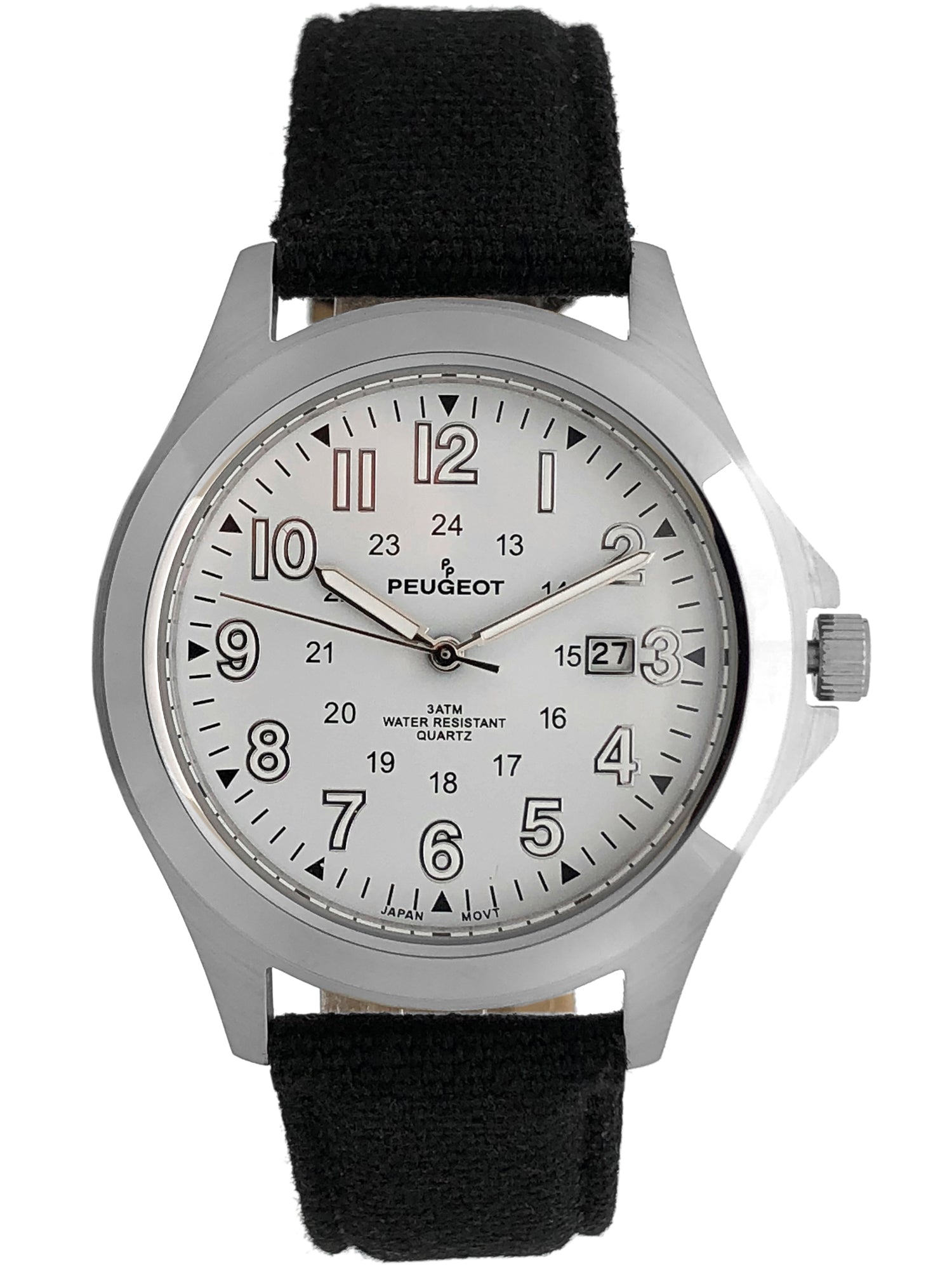 Men 40mm Military White Dial Calendar Watch with Canvas Strap