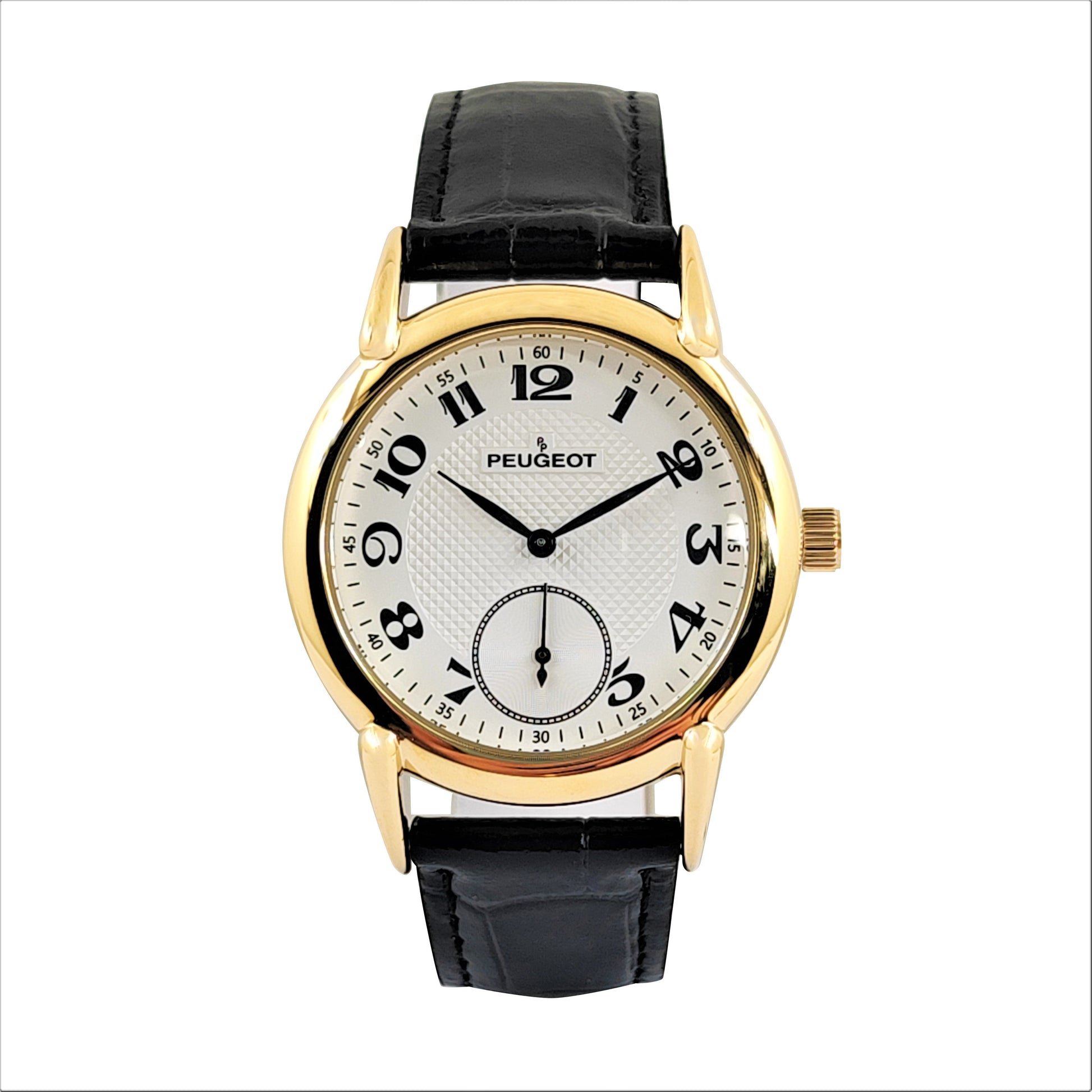 Men’s Vintage 38mm Round Gold Plated Watch with Black Leather Band