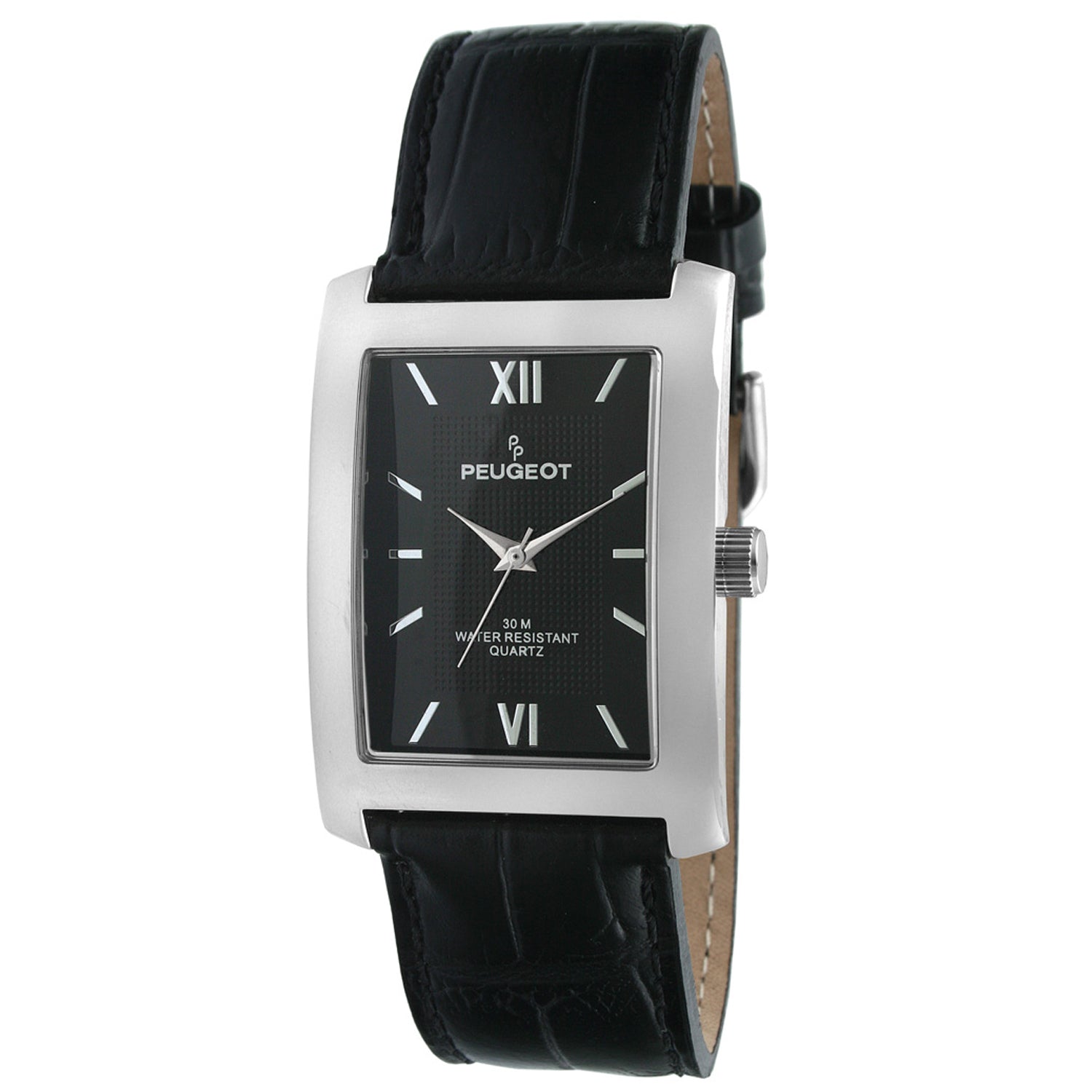 Men's 30X40mm Silver Tank Shape Watch with Black Dial and Strap