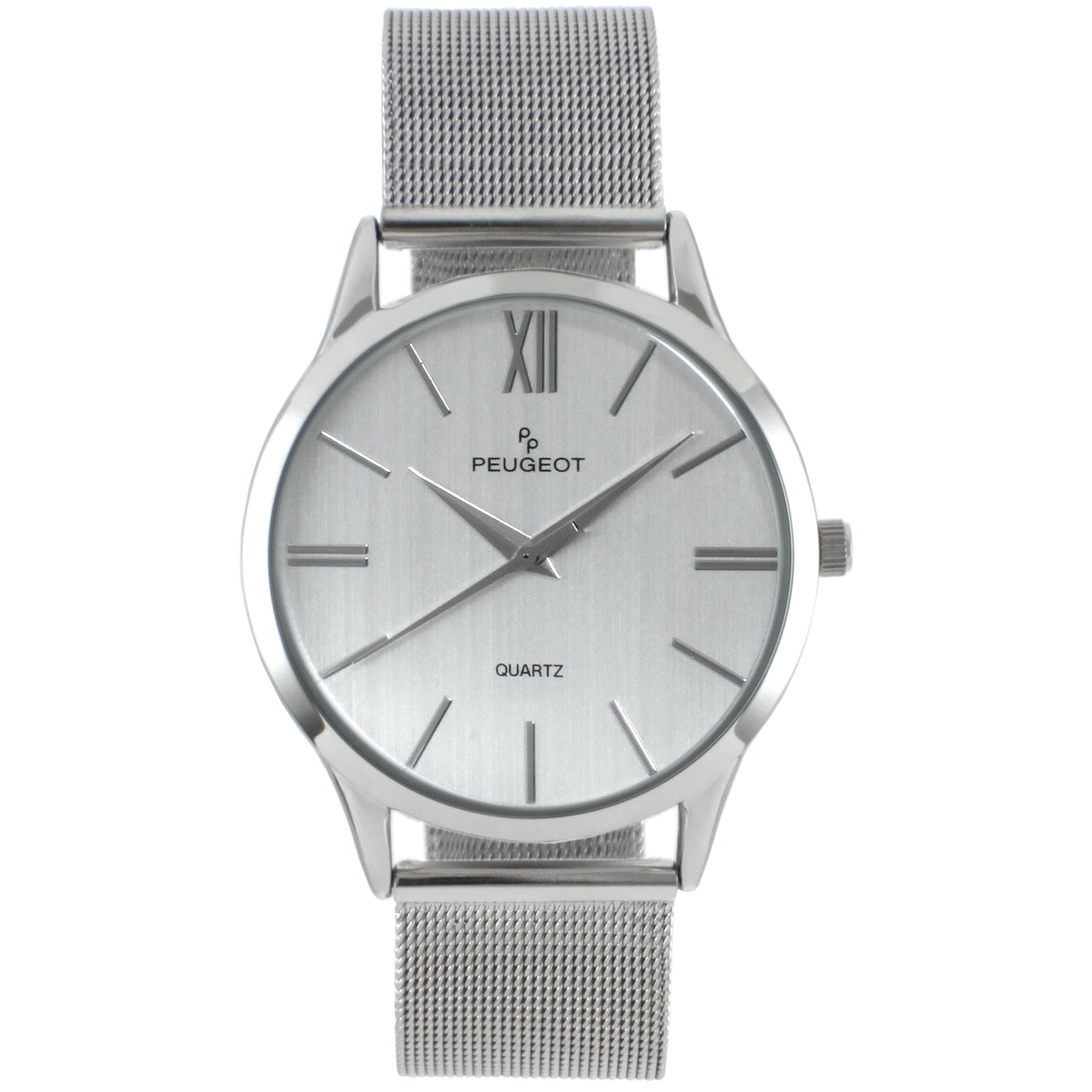 Men's 40mm Silver Dial Slim Case Stainless Steel Mesh Watch