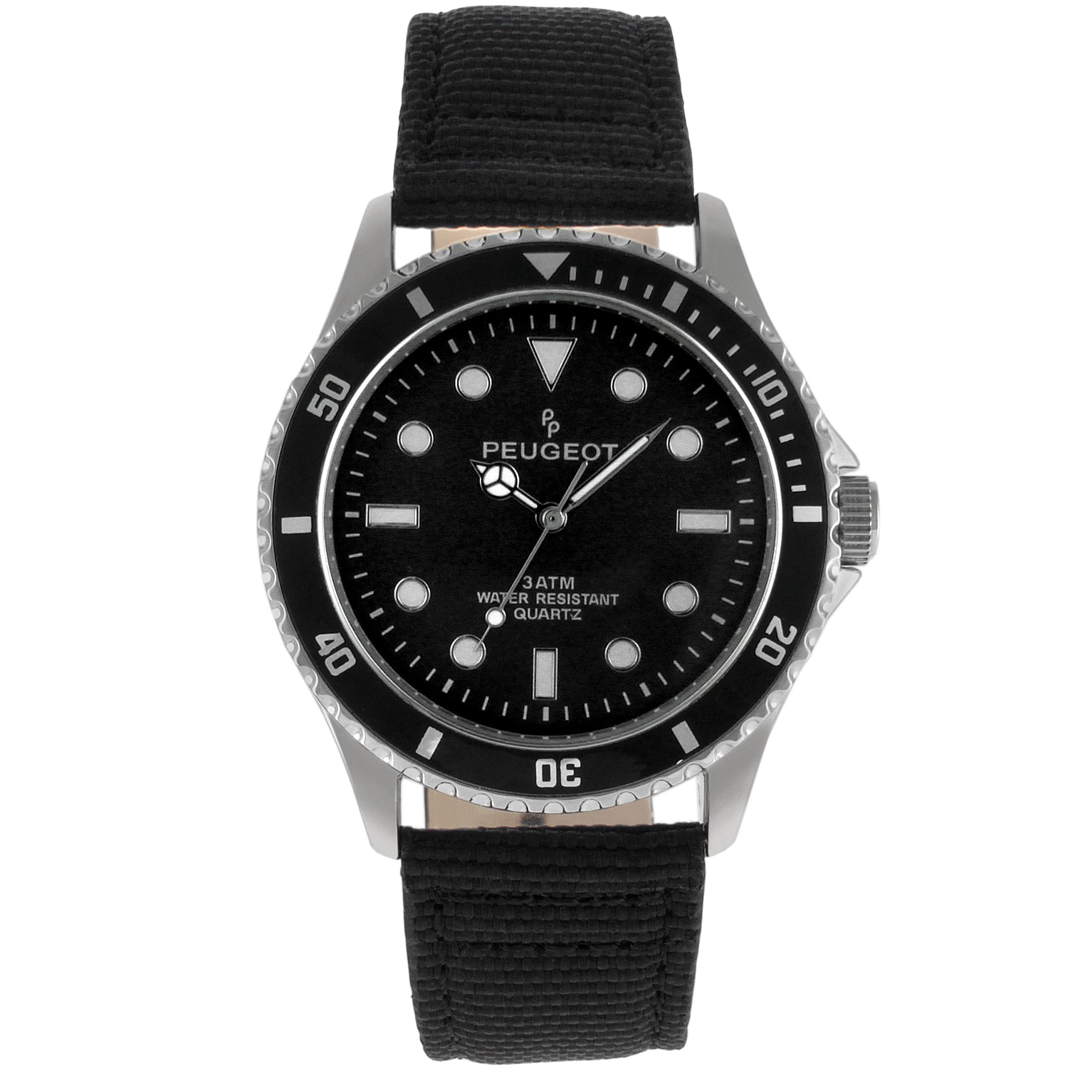 Men's 42mm Sport Bezel Watch with Black Dial and Canvas Strap