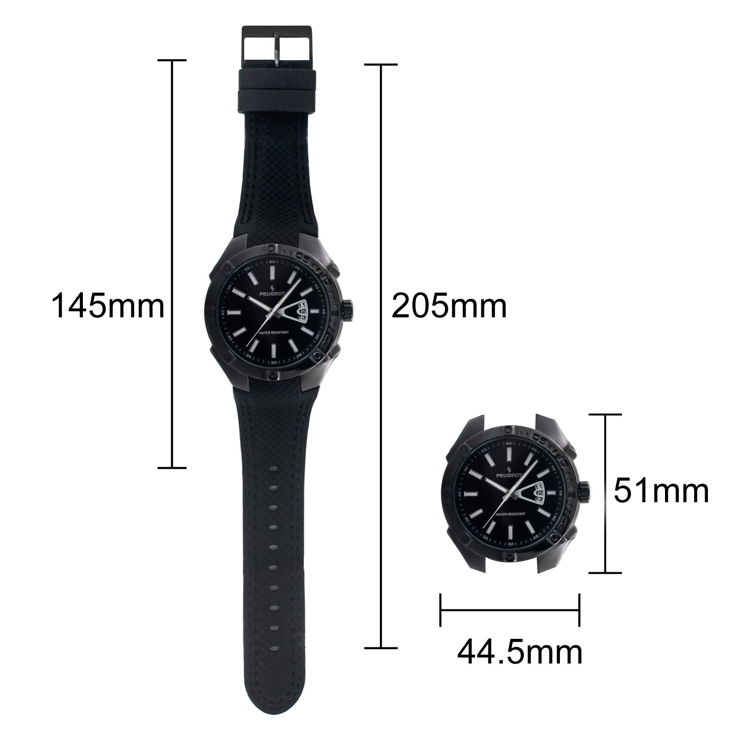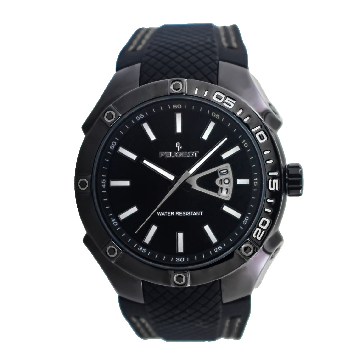 Men's 44mm Black Sport Calendar Stitched Rubber Band Watch