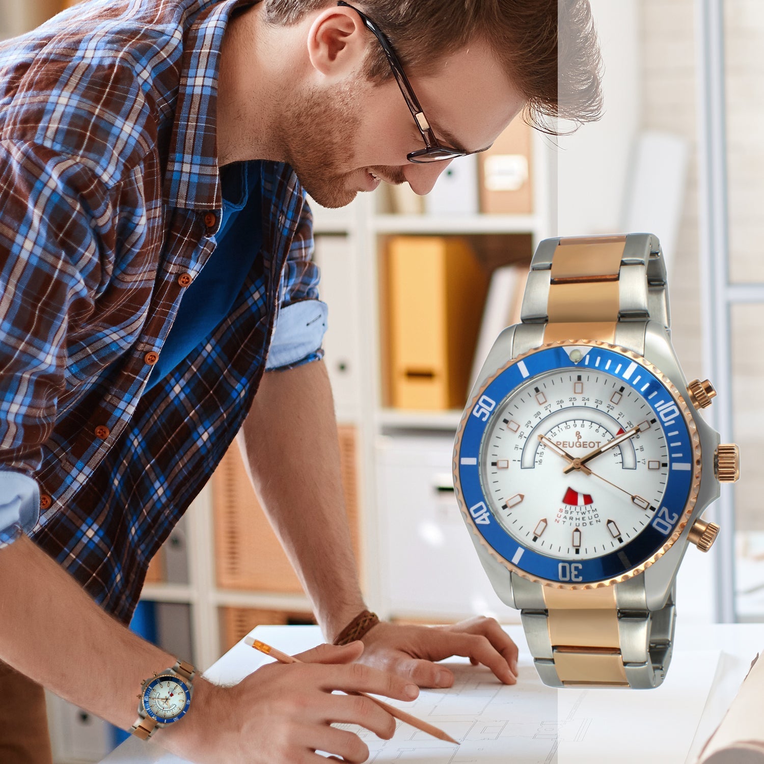 Commanding and classic, The Prescott features a bold 46mm circular dial with day and date functions, paired with a polished stainless steel Two-Tone bracelet for lasting elegance. Perfect for making a strong statement at business meetings or special events, this watch combines practicality with refined style. Whether closing deals or celebrating milestones, The Prescott keeps you on time and in control. A true symbol of confidence and success.