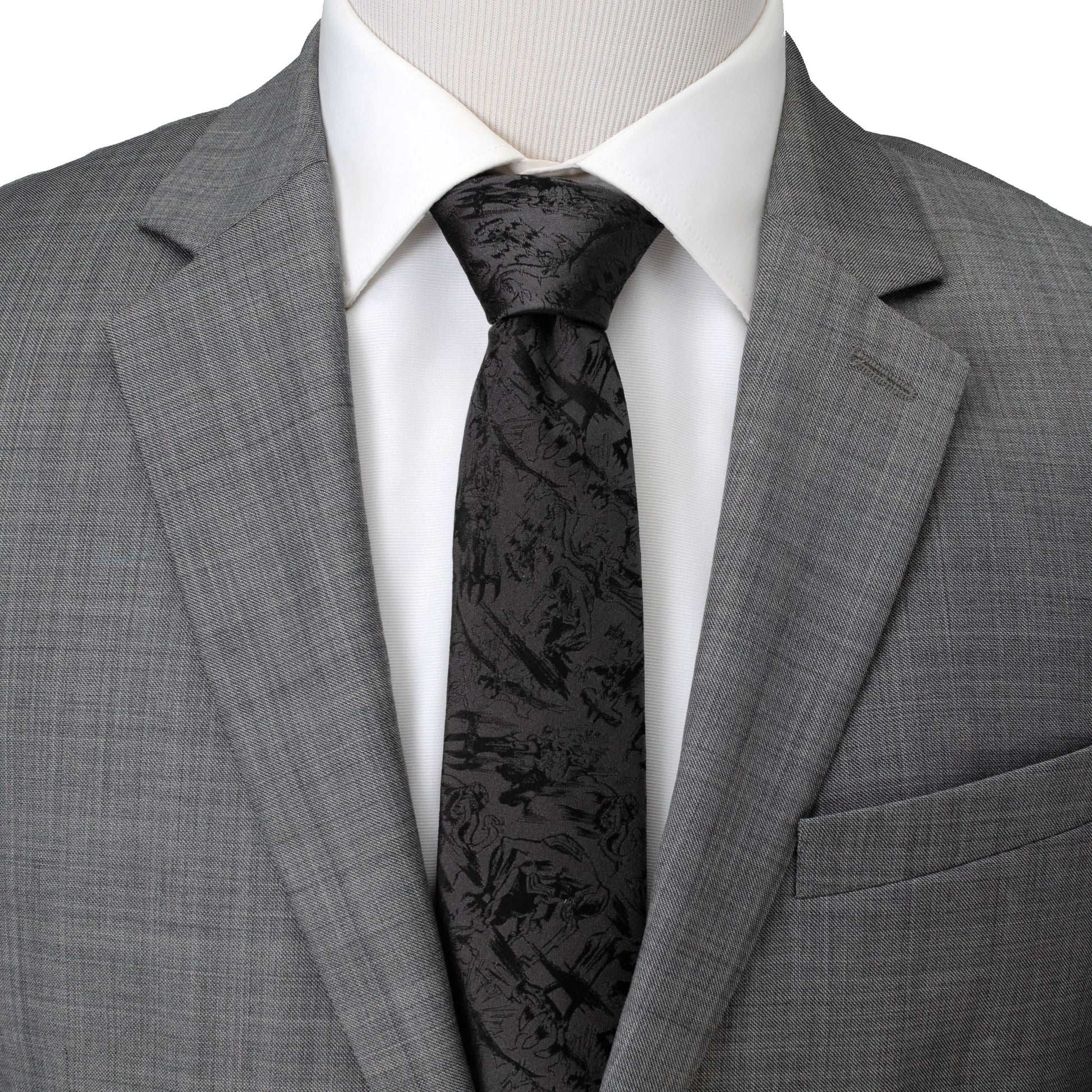 Catch Venom in action with our subtle yet sophisticated dark gray silk tie. Woven in black on a dark gray base is Venom in a comic book style design, creating a tonal effect. Imbued with the power of superhero craftsmanship, our 100% Silk tie is built to withstand the mightiest battles while making sure you'll always maintain your sharp, heroic look. Pairs perfectly with our Venom Hidden Message Tie Bar. Officially licensed by Marvel.